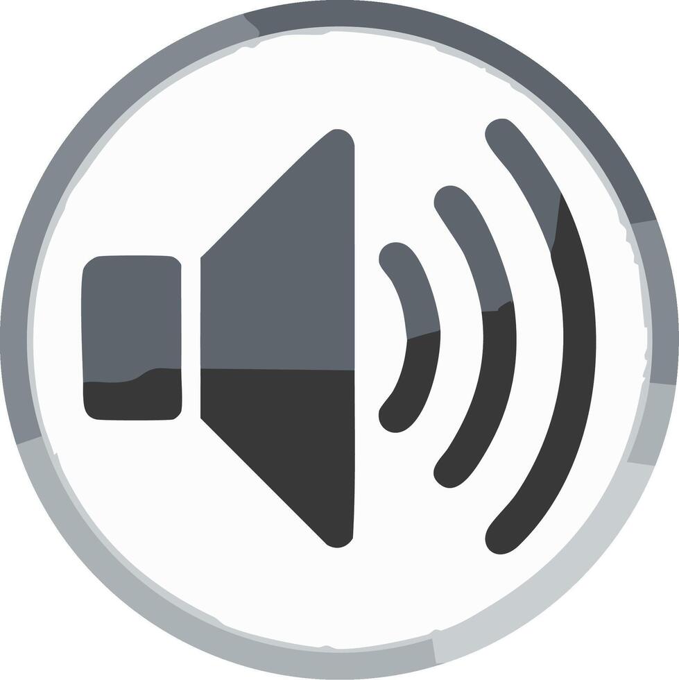 Grayscale volume speaker icon with sound waves in a textured circular design element Pro Vector
