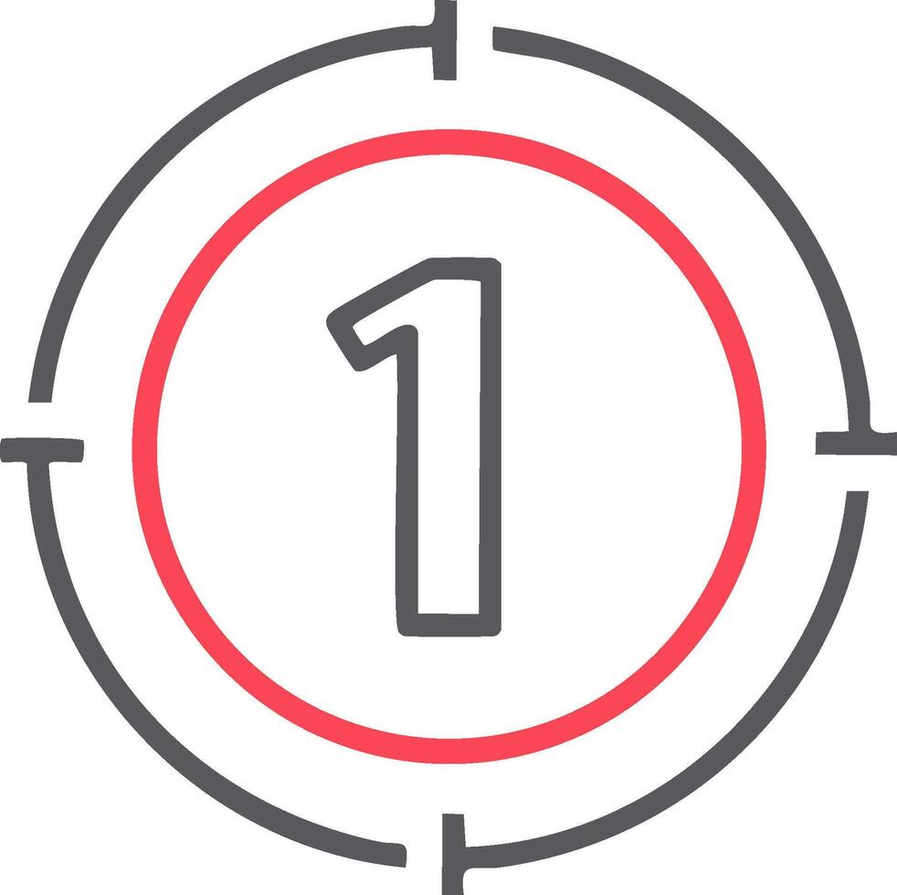 Minimalist circular target icon with number 1 in red and gray outline Pro Vector