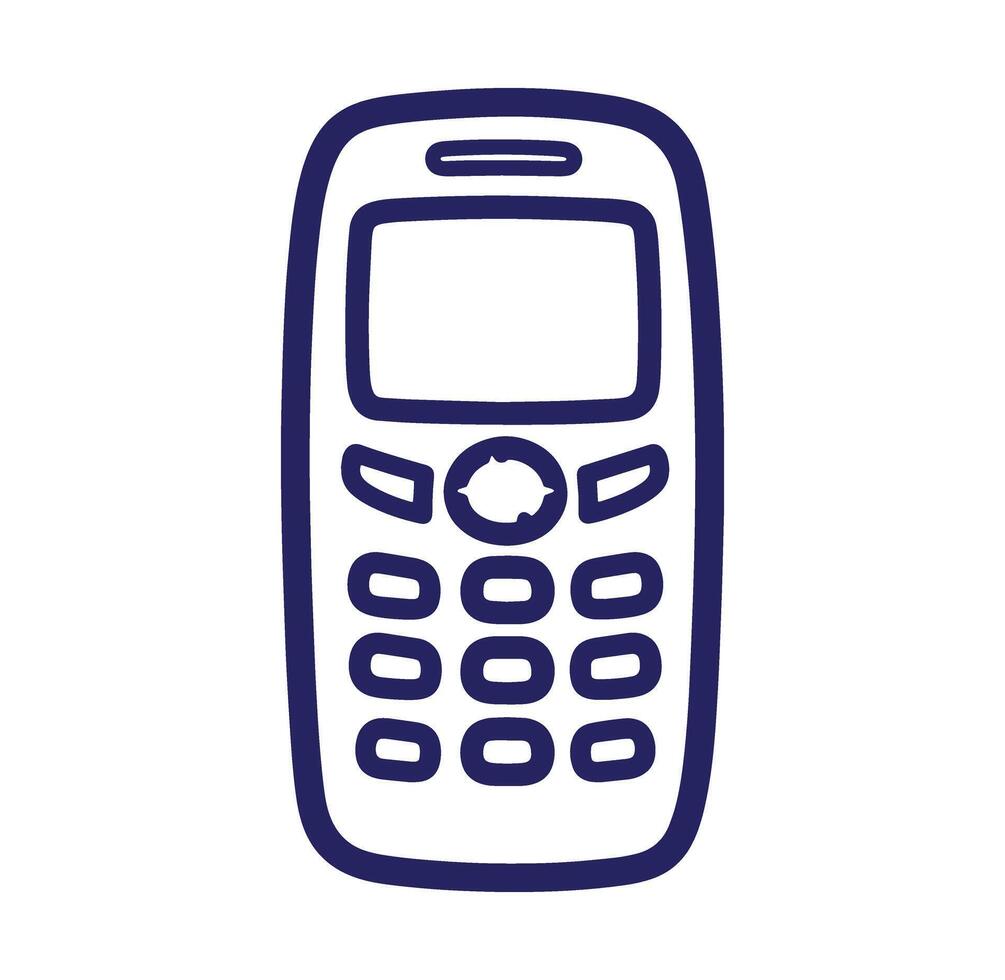 Simple line art illustration of a classic mobile phone with button keypad design Pro Vector
