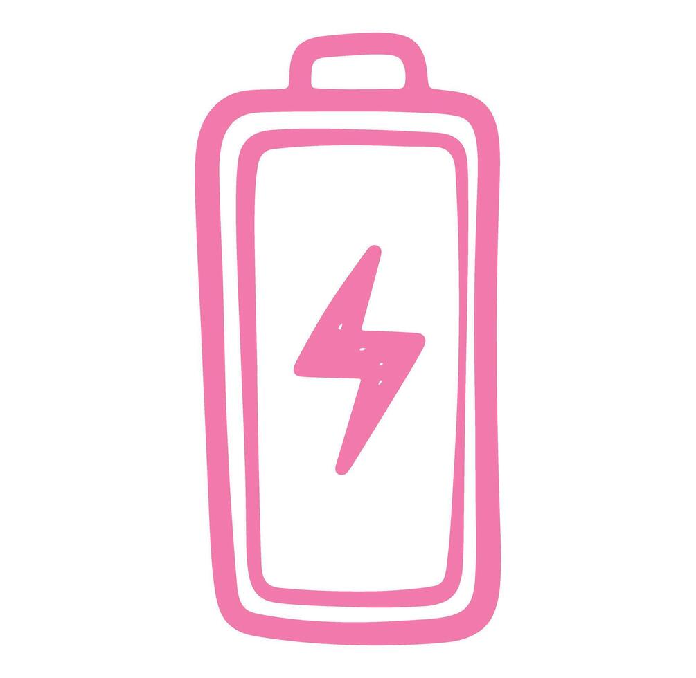 Pink hand drawn battery icon with lightning bolt representing energy and power on white background Pro Vector