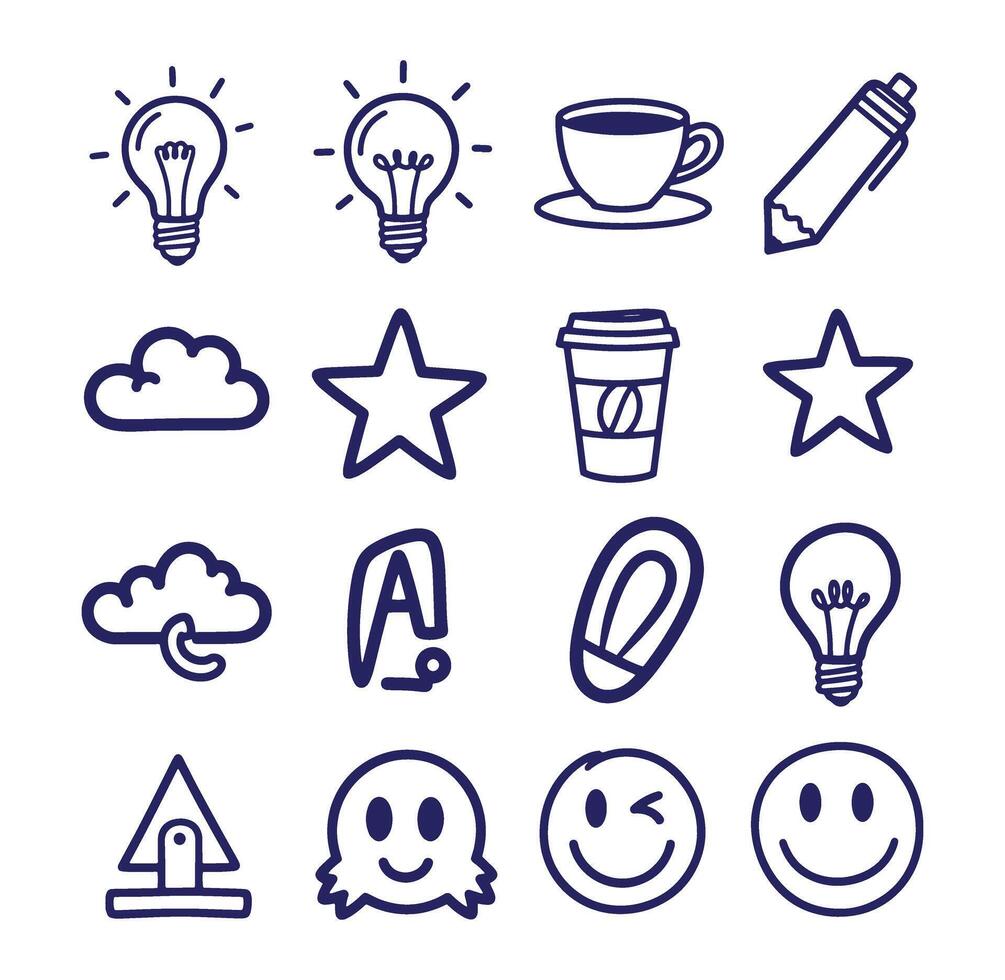 Simple hand drawn icons of everyday objects and symbols for user interface elements Pro Vector