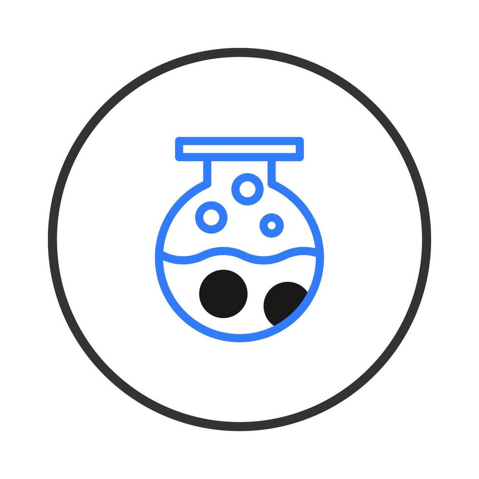 Laboratory experiment icon with blue flask and floating bubbles inside a circular symbol vector