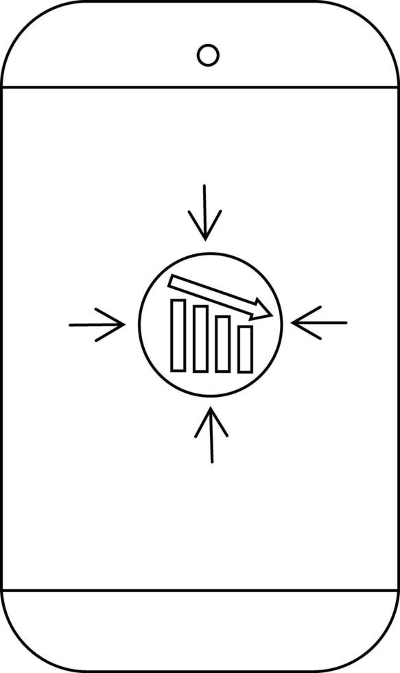 A smartphone displays a graph icon with downward arrows indicating a decline Free Vector