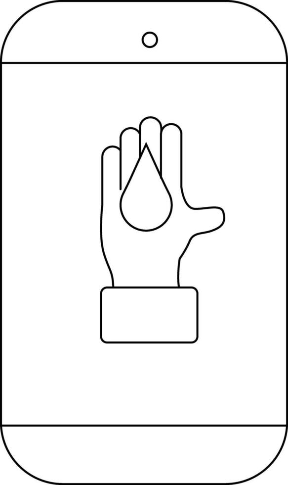 A smartphone displaying a hand with a teardrop vector