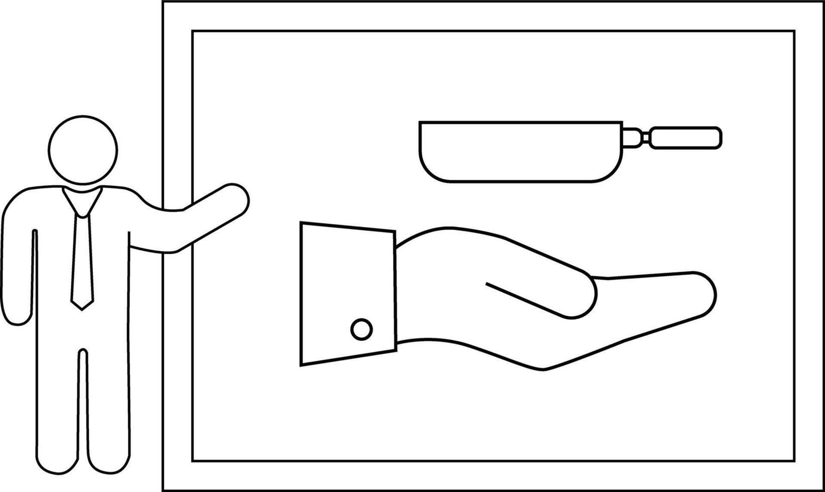 Image shows a person presenting a hand with a pan above it on a framed image vector