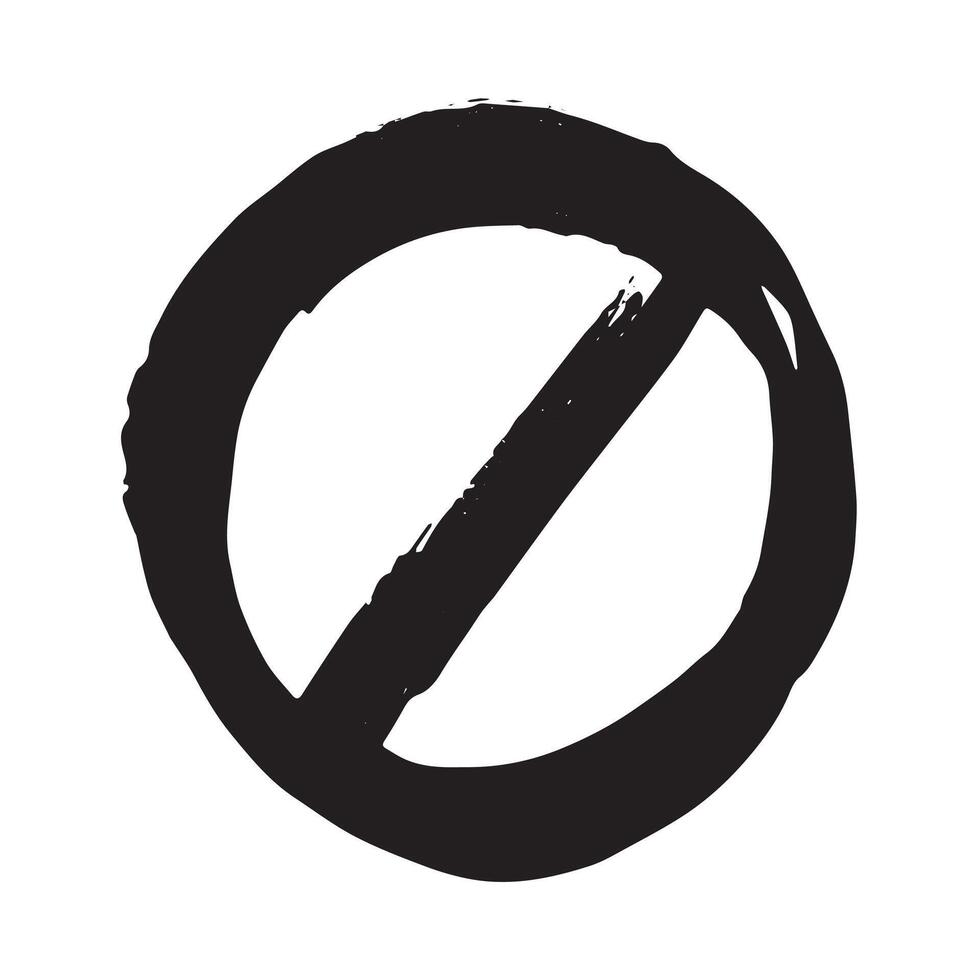 prohibition warning Hand drawn prohibition sign No entry symbol Black circle with cross line clipart in doodle style Ban Restriction Forbidden stop Single element for print, web, design Pro Vector