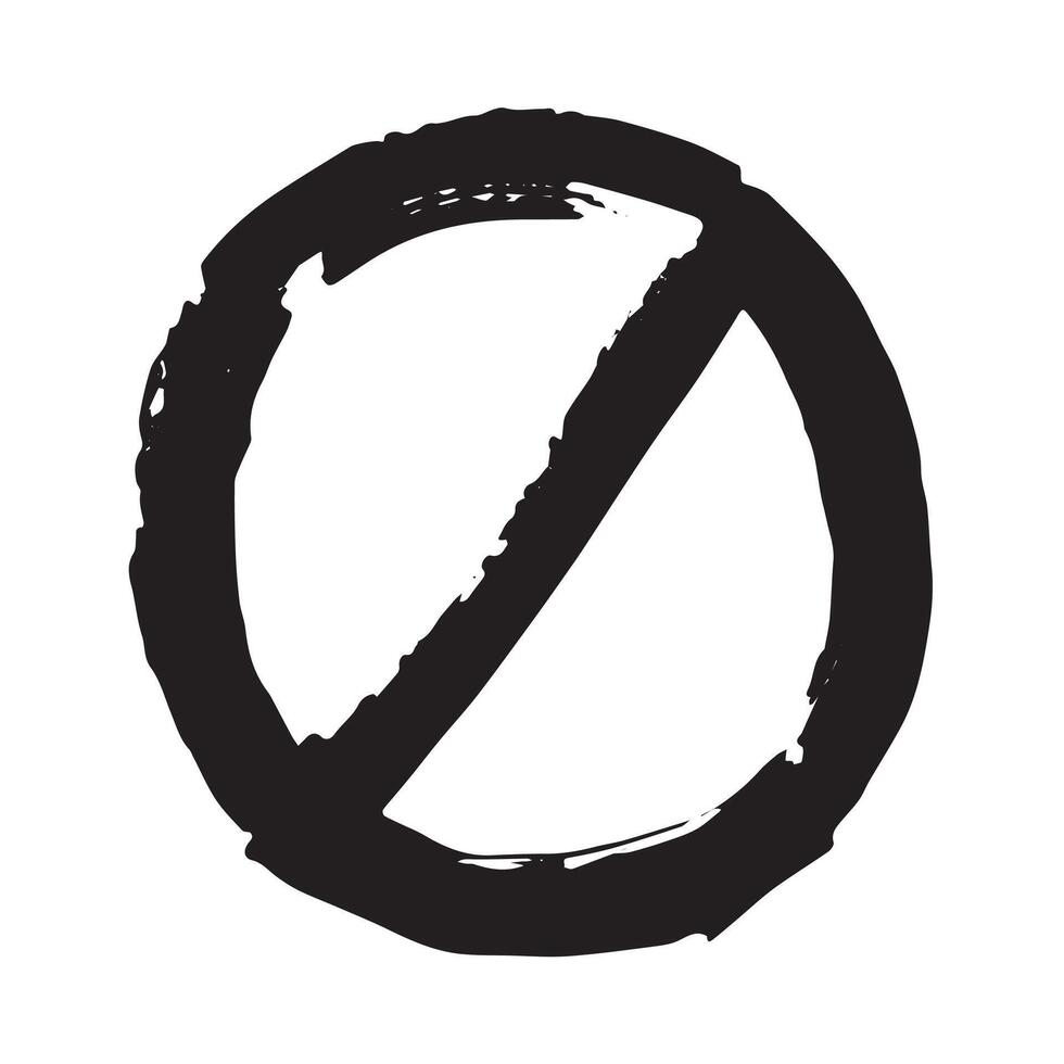 Hand drawn prohibition sign No entry symbol Black circle with cross line clipart in doodle style Ban Restriction Forbidden stop Single element for print, web, design prohibition restriction Pro Vector