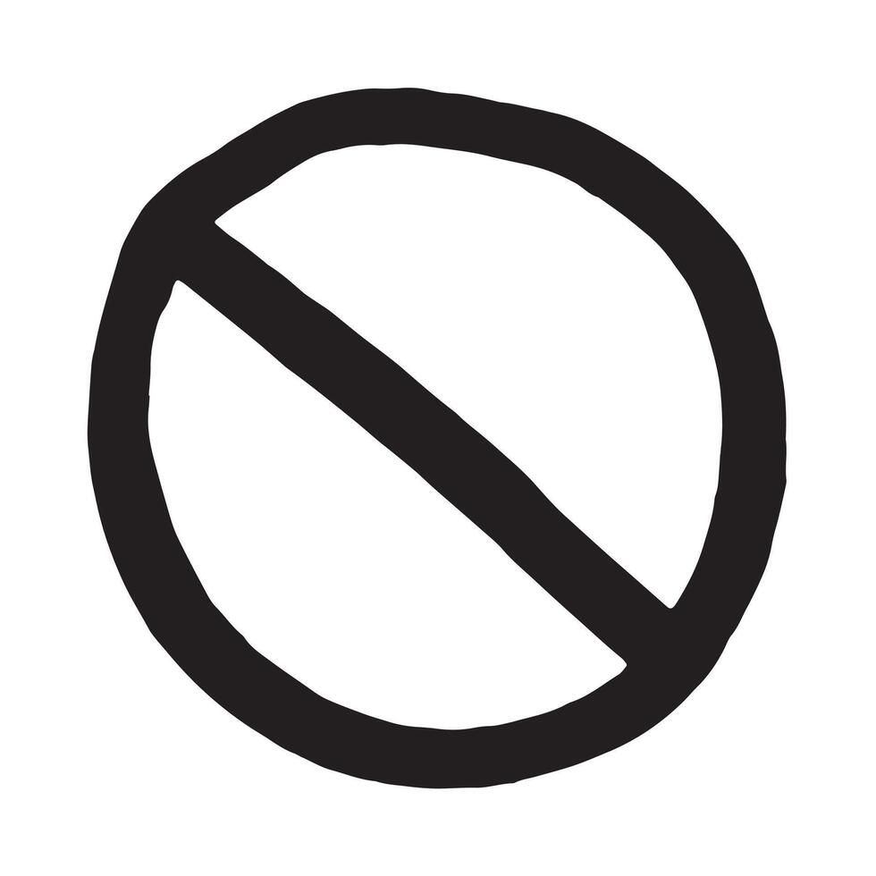 Hand drawn prohibition sign No entry symbol Black circle with cross line clipart in doodle style Ban Restriction Forbidden stop Single element for print, web, design scribble Pro Vector