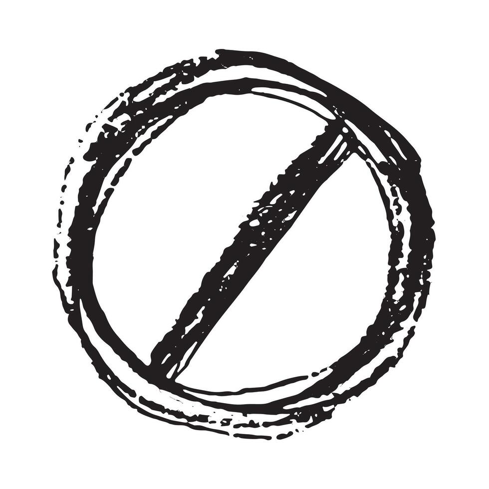 brush Hand drawn prohibition sign No entry symbol Black circle with cross line clipart in doodle style Ban Restriction Forbidden stop Single element for print, web, design Pro Vector