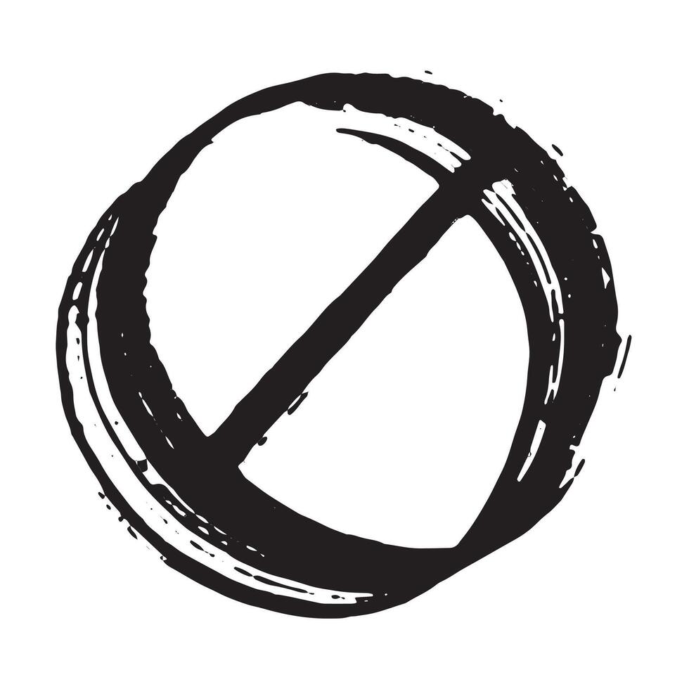 Hand drawn prohibition sign No entry symbol Black circle with cross line clipart in doodle style Ban Restriction Forbidden stop Single element for print, web, design pencil Pro Vector