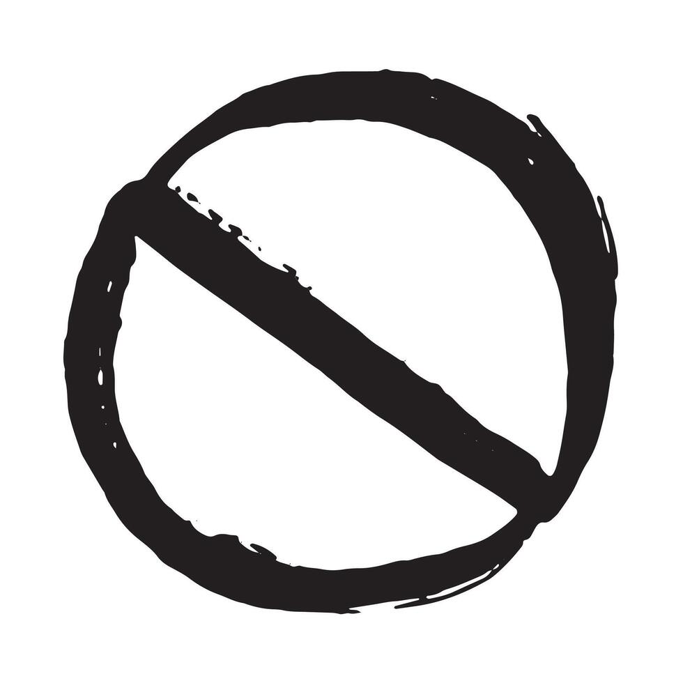 texture Hand drawn prohibition sign No entry symbol Black circle with cross line clipart in doodle style Ban Restriction Forbidden stop Single element for print, web, design Pro Vector