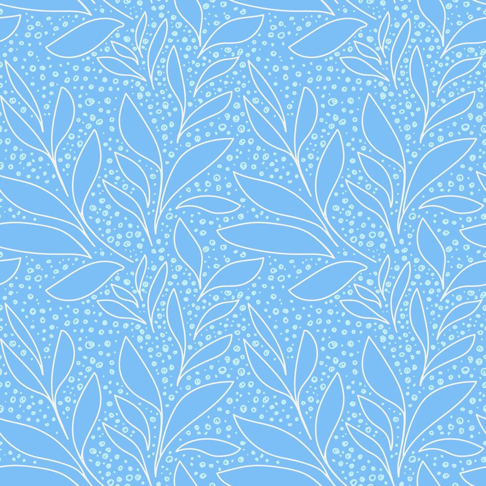 Seamless pattern with abstract shapes leaves and delicate dots on a bright blue background. Simple design for textiles, packaging, stationery, and modern botanical themed vector