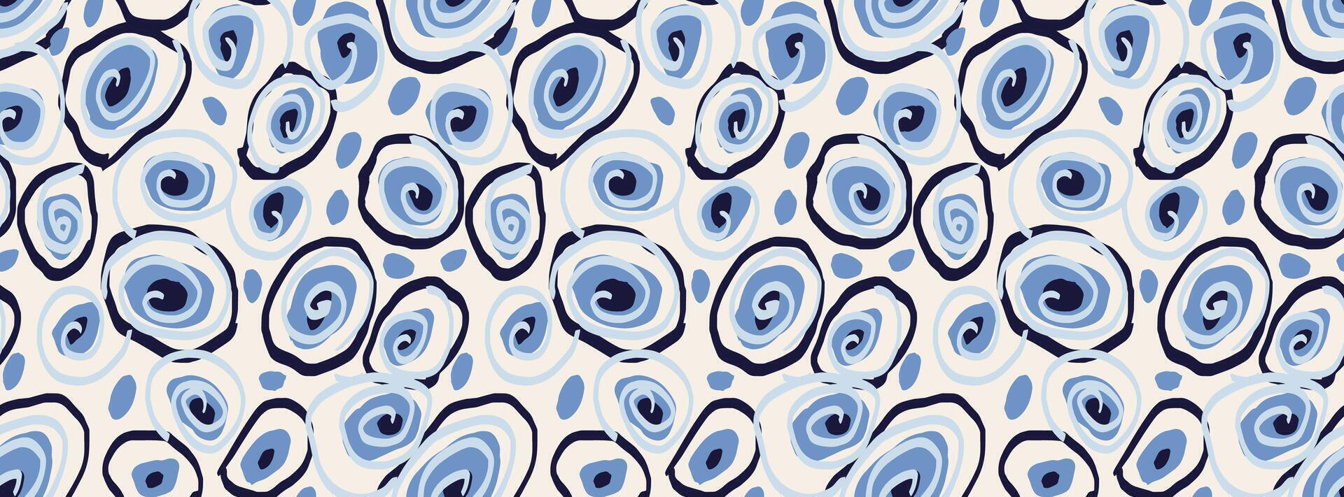 Seamless pattern with abstract spiral shapes in blue tones on a light background. Playful hand drawn texture perfect for fabric, wrapping paper, and modern decor Free Vector