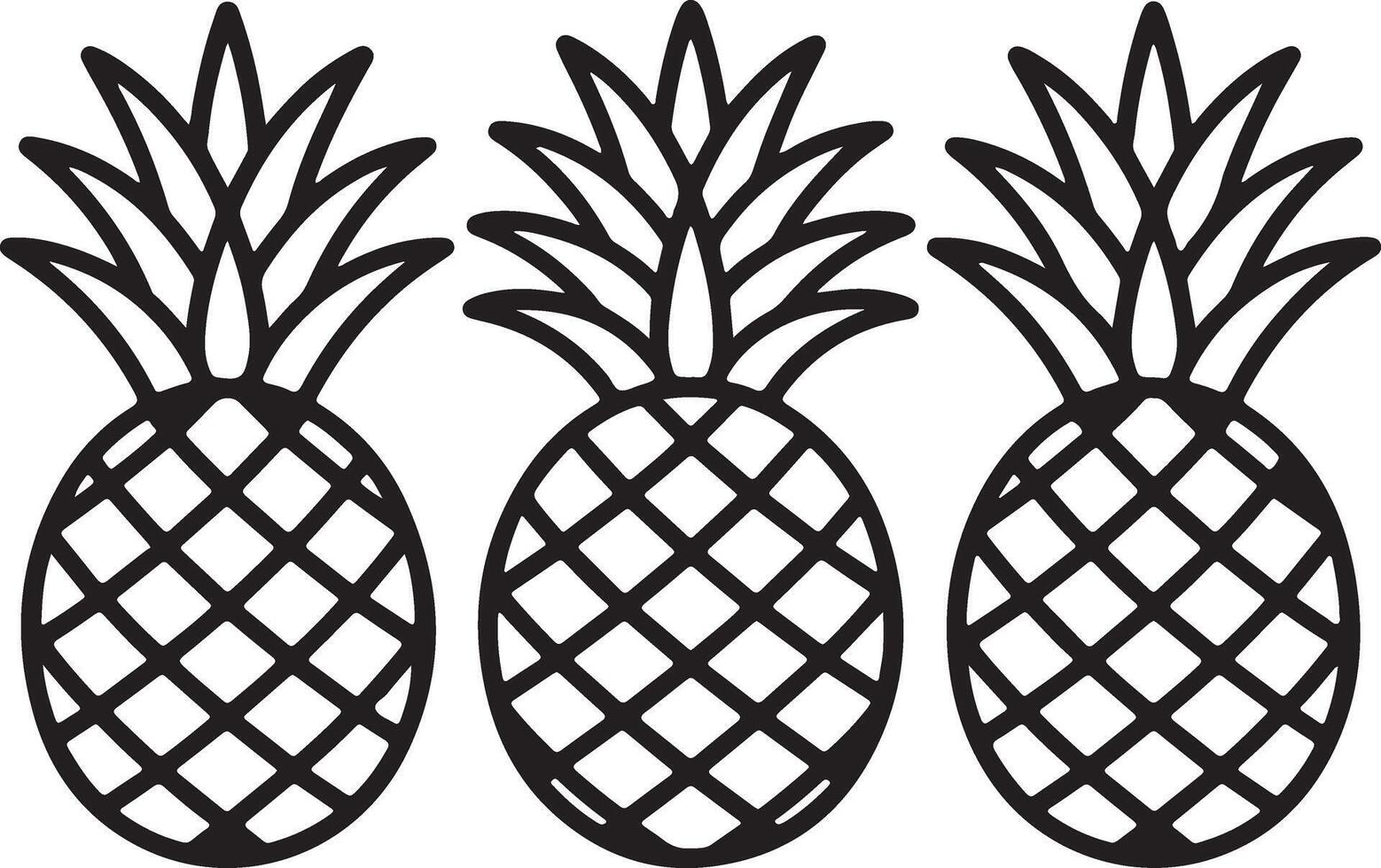 Three stylized pineapples in a seamless repeating pattern on white background Pro Vector
