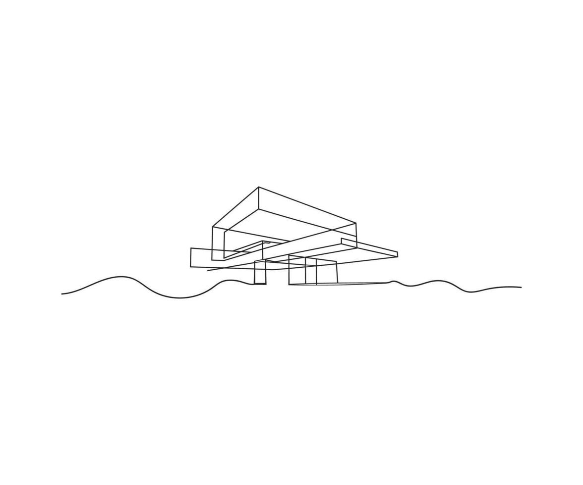 Modern Architectural Sketch An abstract architectural line drawing showcasing a contemporary building with sleek lines and a minimalist design. Pro Vector