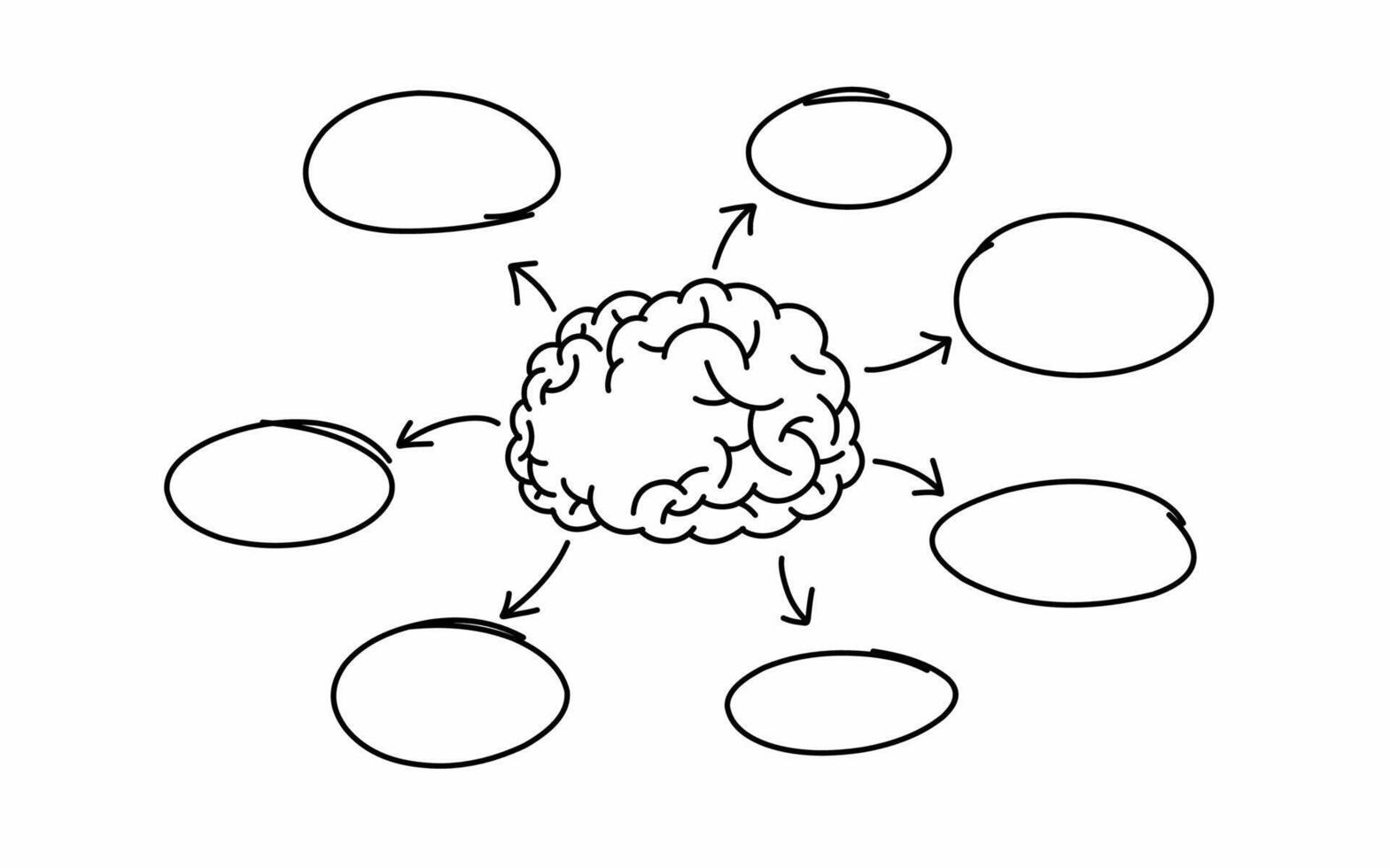a drawing of a brain with arrows line. Mind mapping for thinking schedule vector