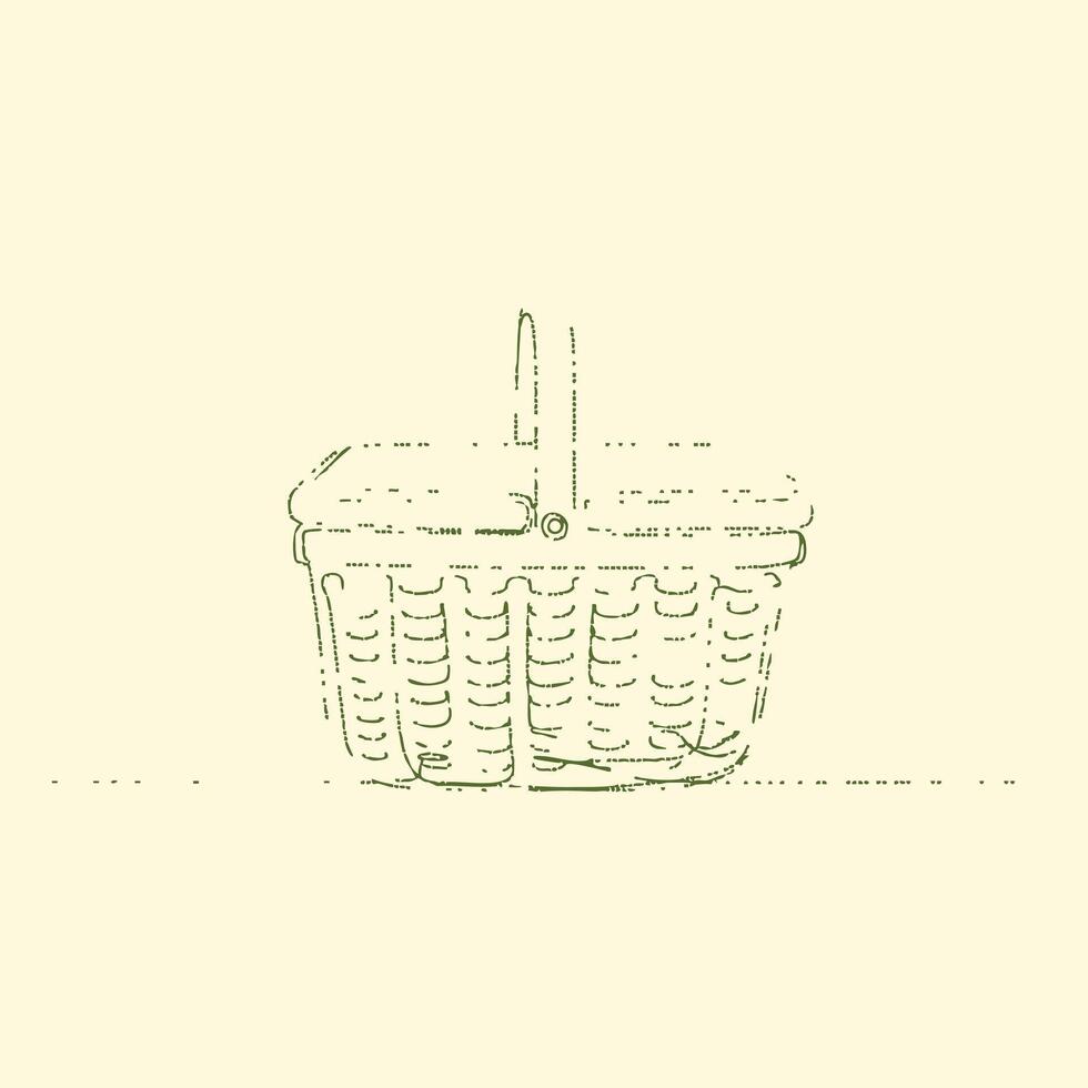 Simple Hand-Drawn Basket with Handle and Woven Pattern on Light vector
