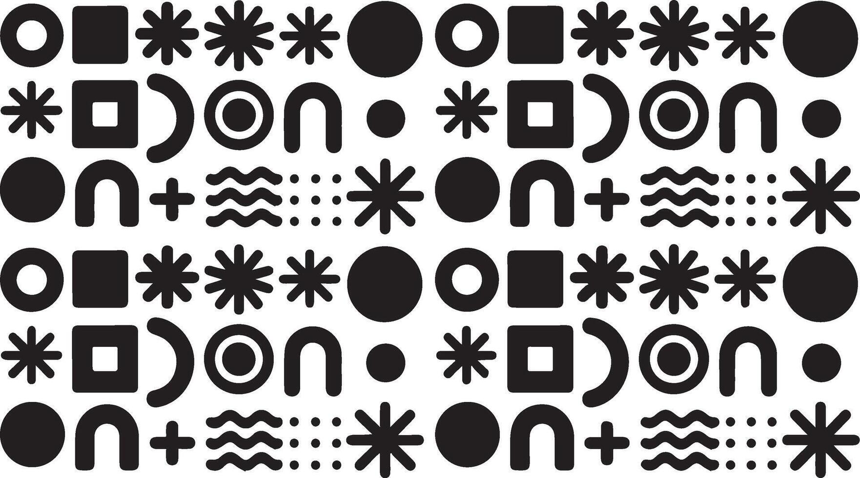 Abstract Background with Geometric Shapes Circles, Squares, Stars, Waves, Plus Signs, Dots, and Crescent Shapes Pro Vector