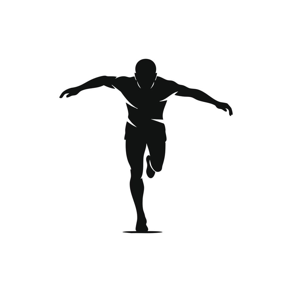 Dynamic silhouette of a sprinter running forward with arms extended, captured in motion against a plain vector