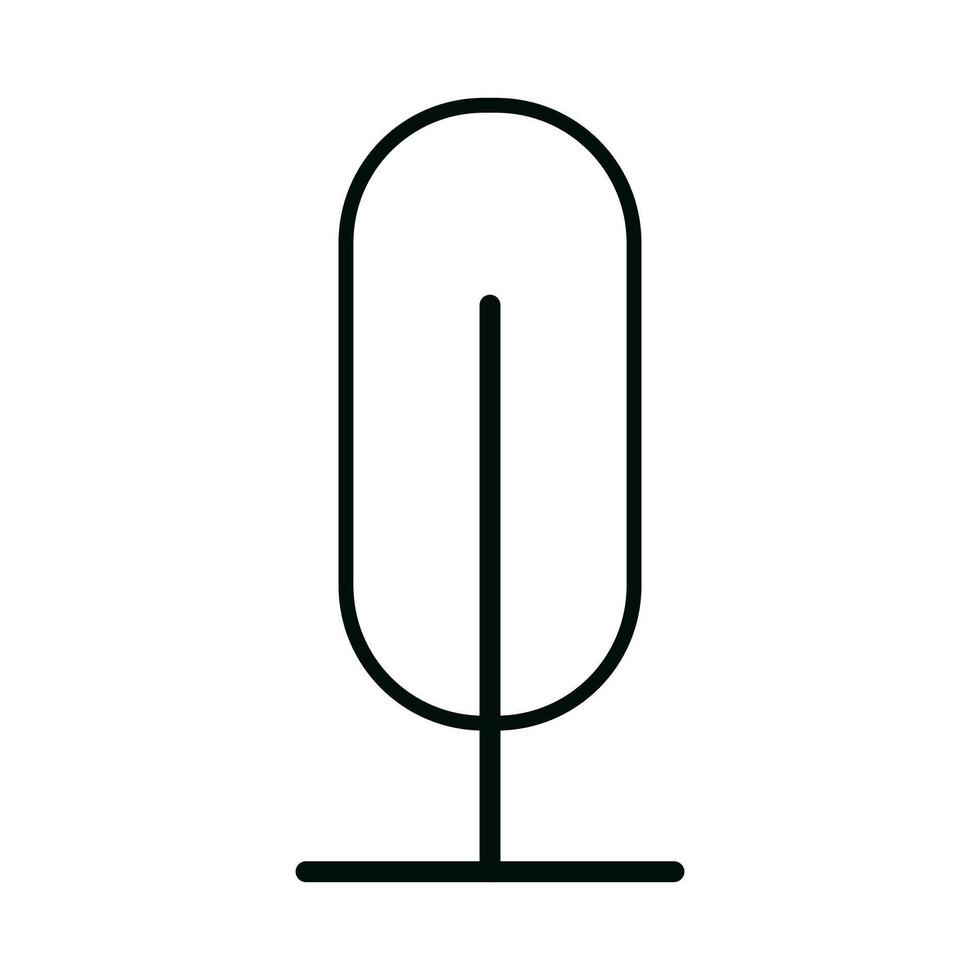 Minimal black contour drawing of stylized vertical tree with capsule-shaped canopy and thin base Free Vector