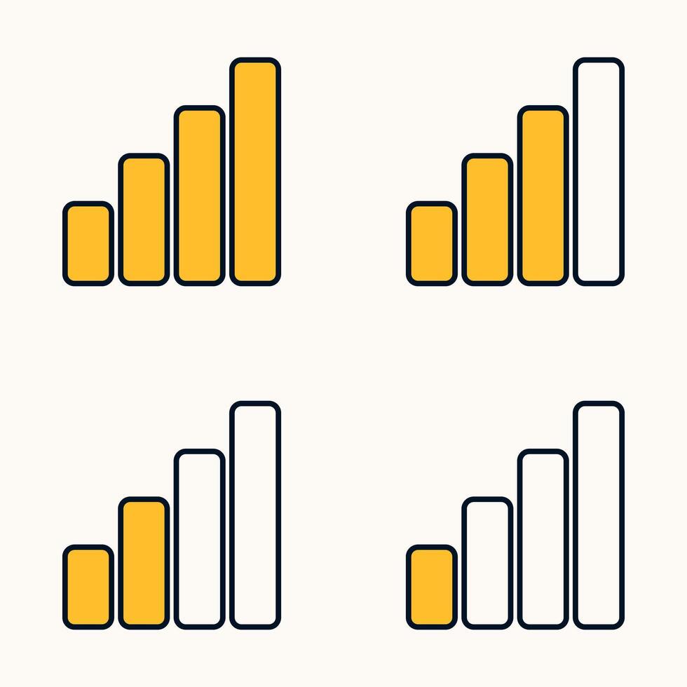 Mobile network signal strength icons from low to full bars in minimal style Free Vector