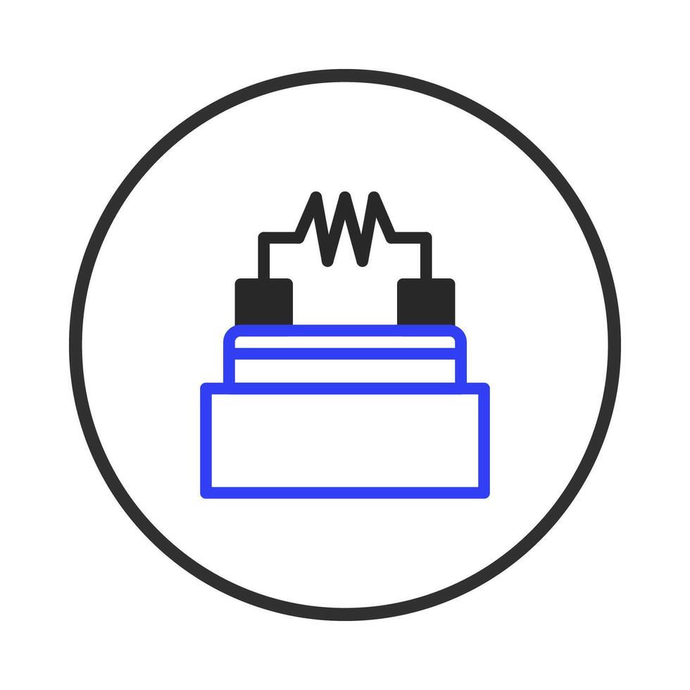 Conceptual circuit component illustration in white circle showcasing electronics and connectivity vector