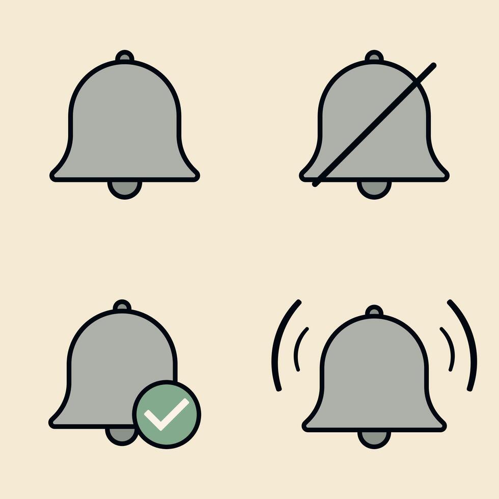 Modern notification bell symbols for interface use with sound and mute indicators Pro Vector