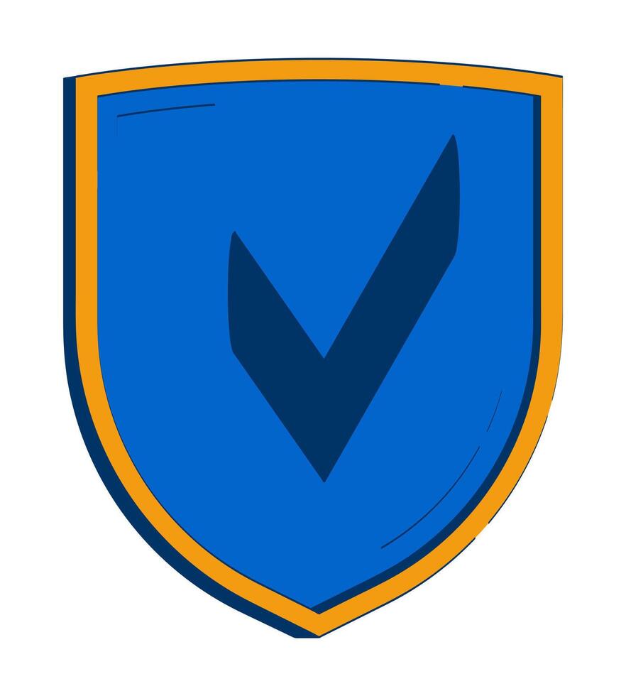 Security shield with approval check 2D doodle object. Data protection. Verified access. Trusted secure symbol cartoon element flat clipart isolated on white background. Hand drawn illustration Pro Vector