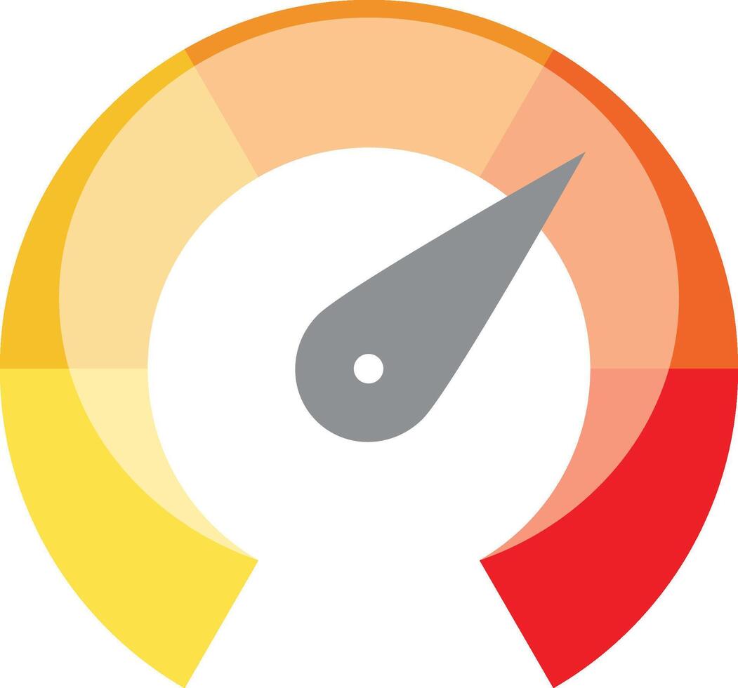 Radial gauge scale from yellow to red with arrow hand pointer. Satisfaction, temperature, risk, rating, performance and feedback indicator or speed tachometer. illustration. Pro Vector