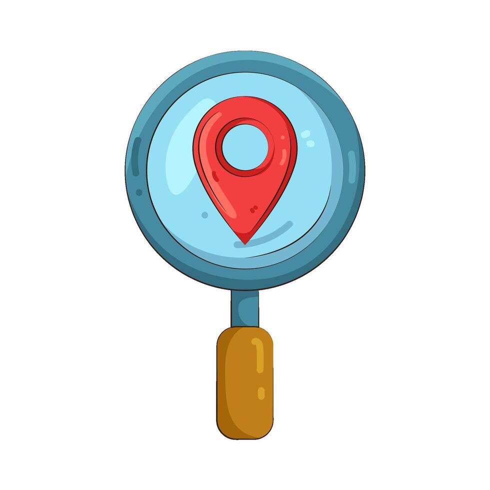 Illustration of Magnifying Glass with Red Map Pointer Pro Vector