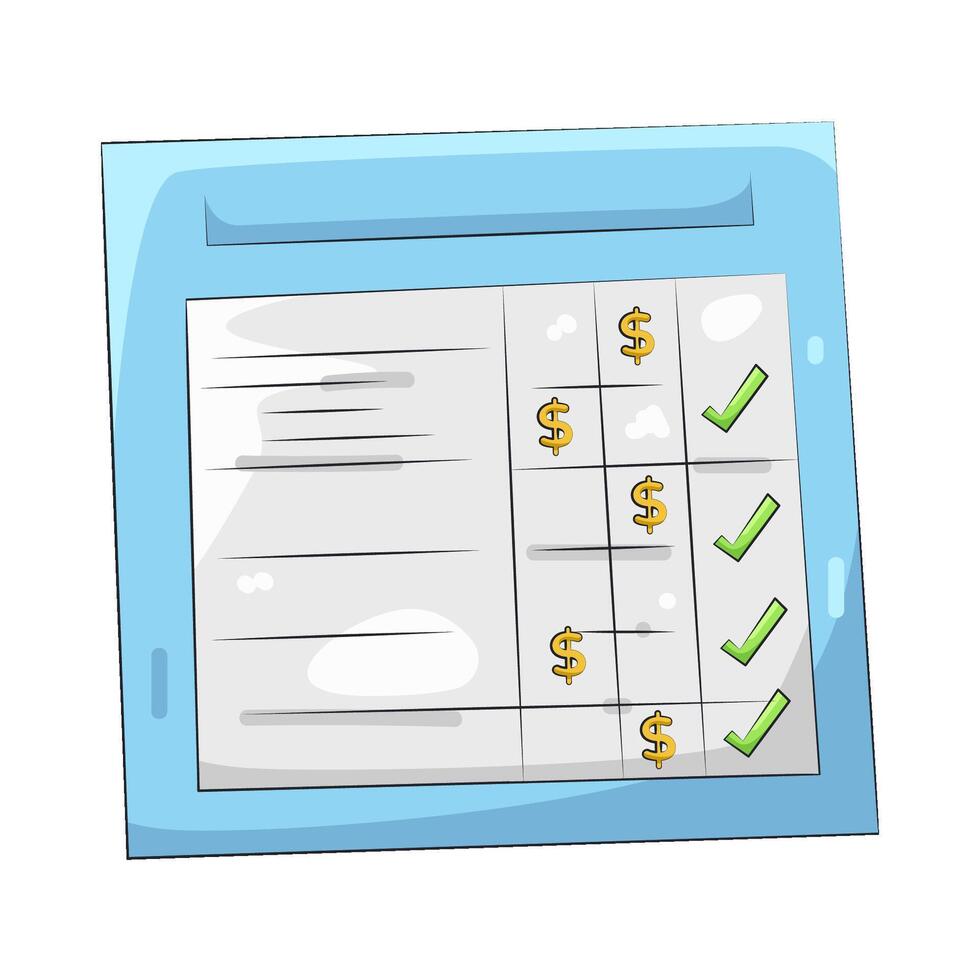 Illustration of Invoice Document with Checkmarks and Prices Pro Vector