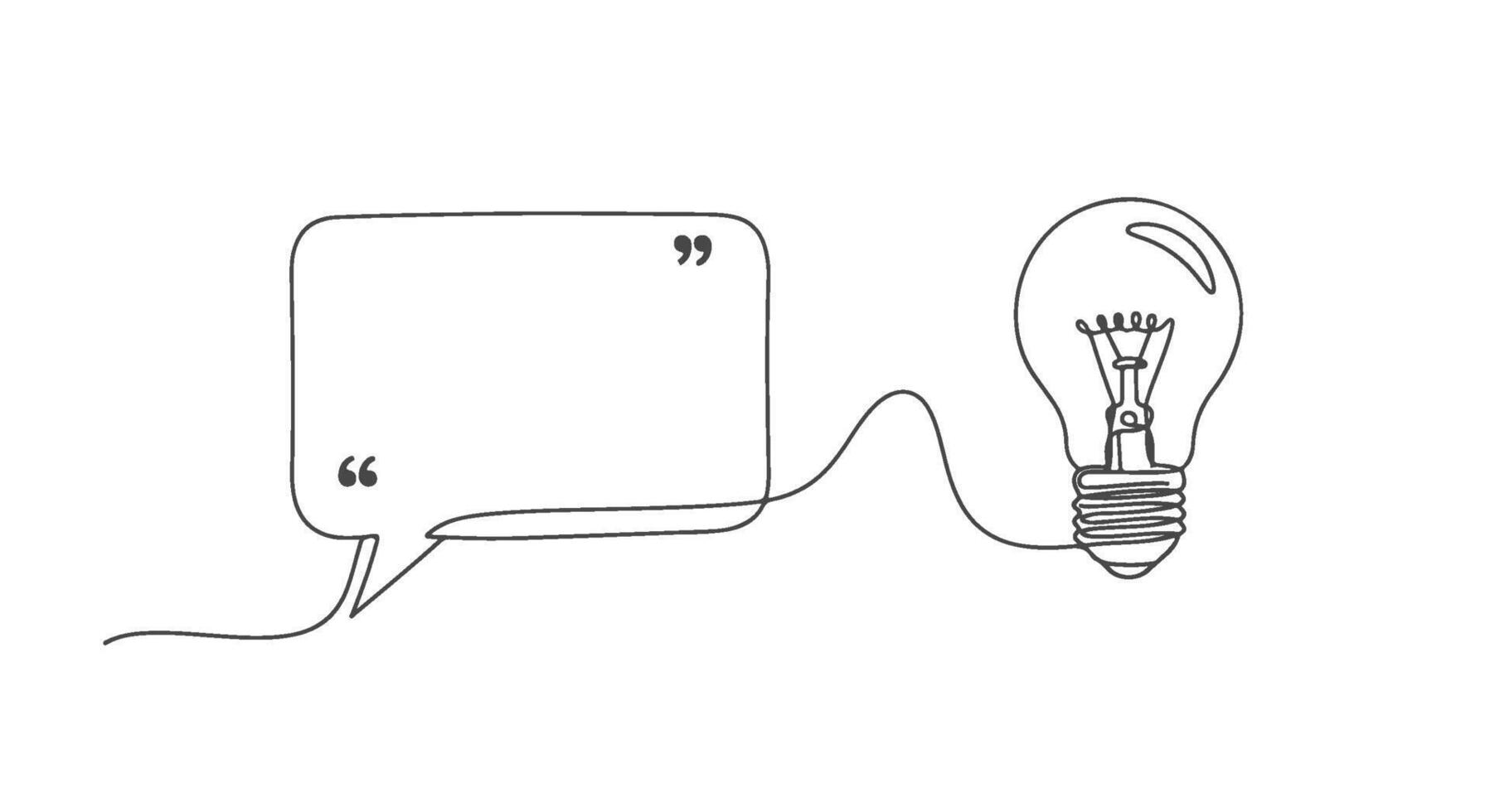 A lightbulb and a speech bubble drawn with one continuous line, representing ideas and communication, isolated on a white background Pro Vector