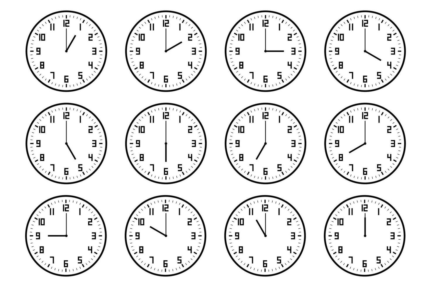 set of analog clock icon with number notifying each hour isolated on white. Pro Vector