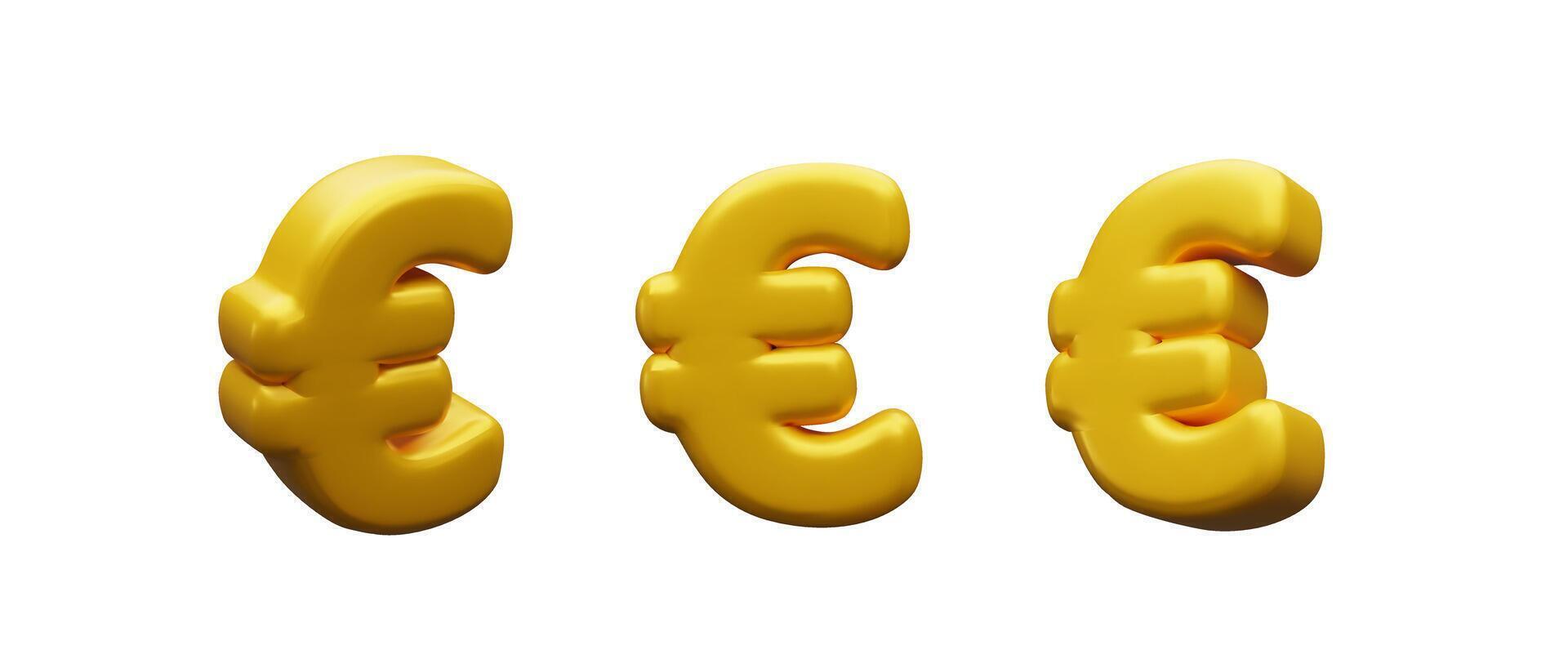 A 3D golden set of Euro currency symbol isolated on a clean white background. The symbol is designed in a puffy, inflated, balloon-like style with smooth, rounded edges and a glossy finish. Pro Vector