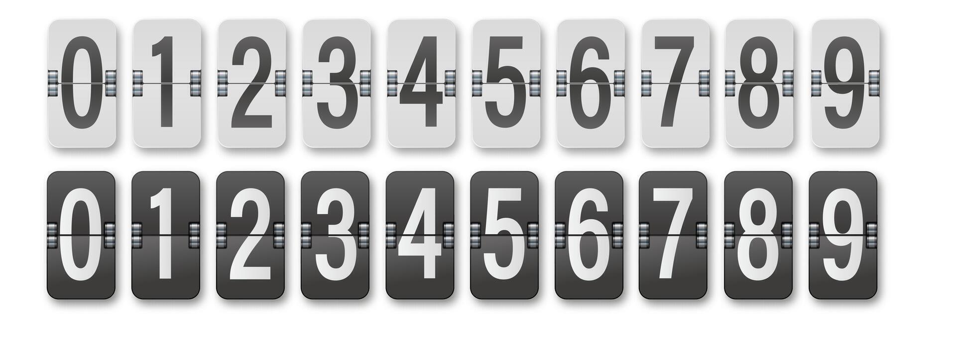 Countdown timer with different numbers isolated on background. Clock counter art design. Graphic mechanical scoreboard panel element Pro Vector