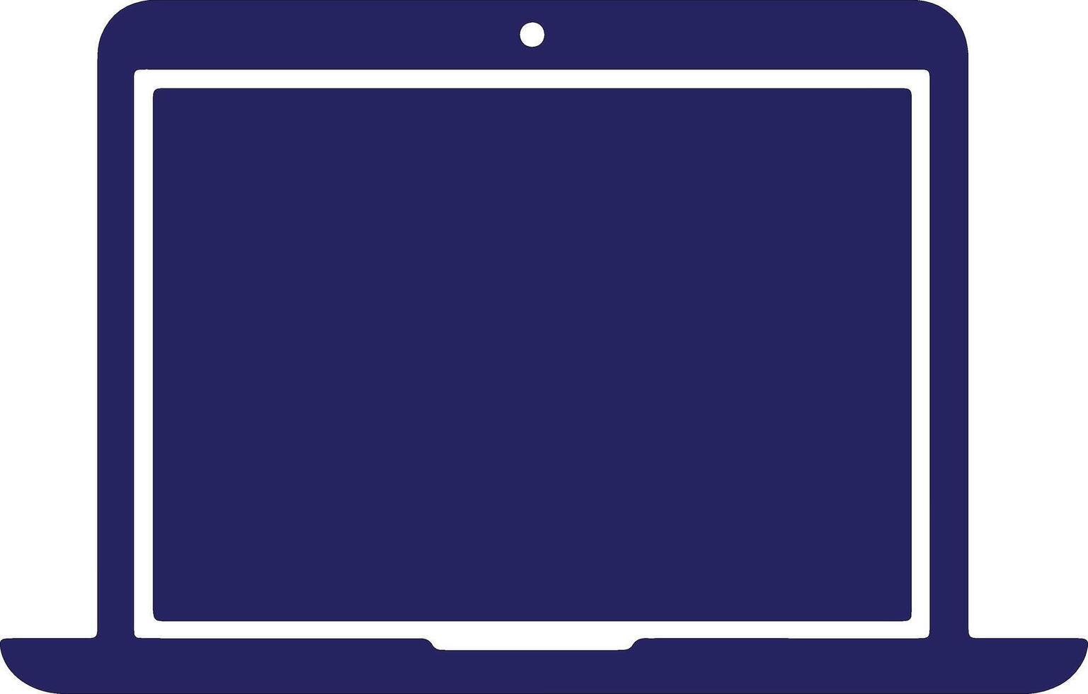 Dark blue laptop computer silhouette graphic on a clean white background, perfect for technology illustrations, digital design elements, and modern web interface icons vector