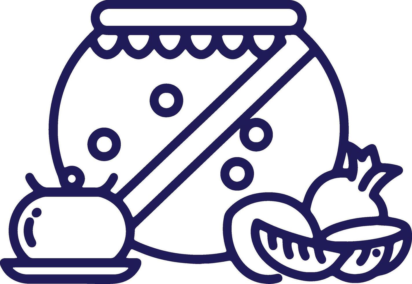 Outline illustration of a pot with some fruits and a small bowl, suitable for various design projects Pro Vector