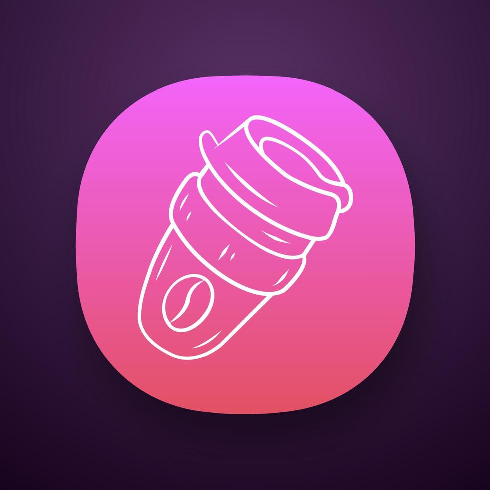 Reusable coffee cup app icon. Envoromentally friendly, recycle, dosposable material. Take and go drink. Eco paper cup. UI UX user interface. Web or mobile application. Vector isolated illustration Pro Vector