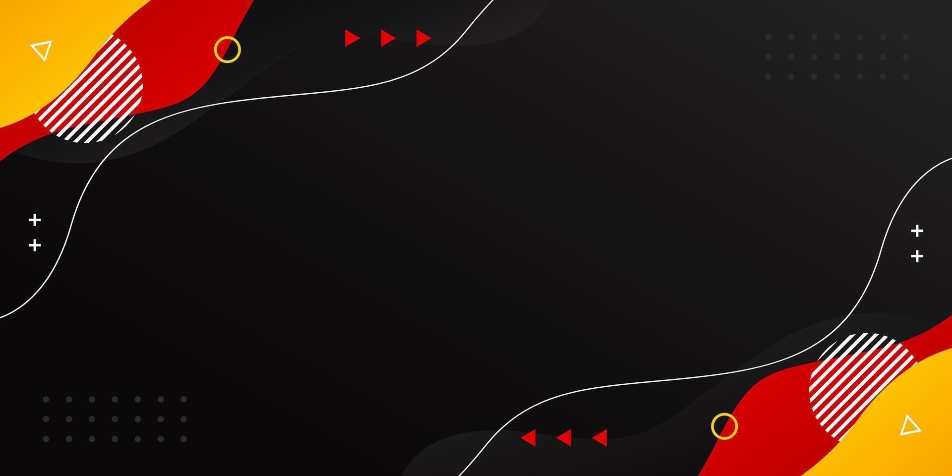 Abstract black, red, and yellow fluid wave background with geometric shapes. Modern dynamic wallpaper. Template banner background Pro Vector