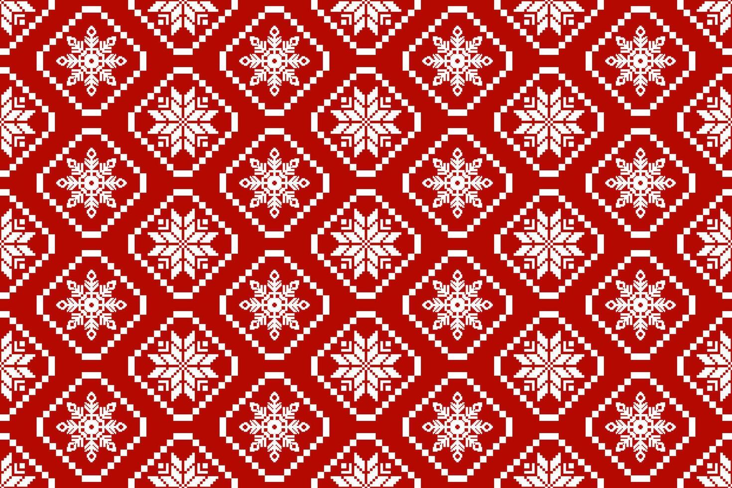 Abstract Snowflake pixel seamless pattern on red background Pro Vector