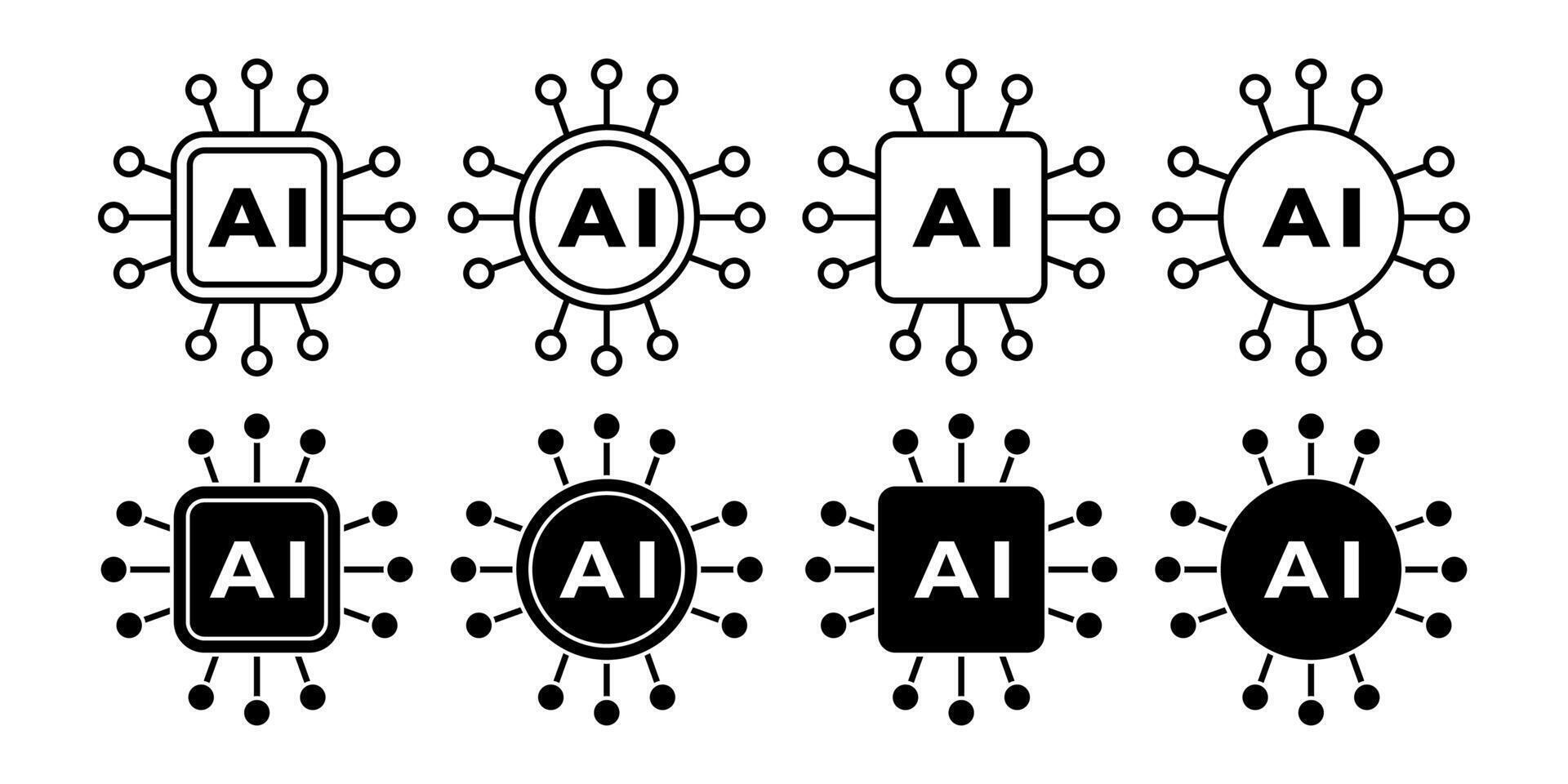 Artificial Intelligence Chip Black Icon Bundle for Processor and Futuristic Technology Concept Pro Vector