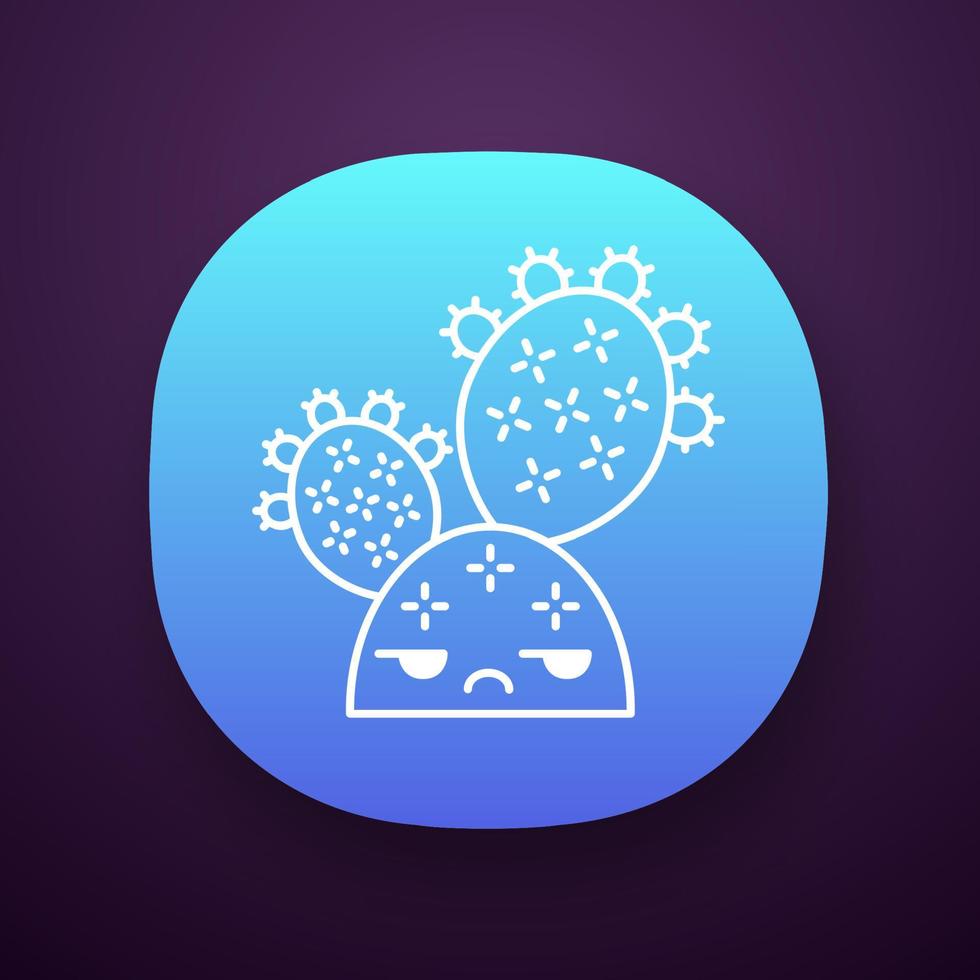 Prickly pear cactus app icon. Cactus with unamused face. Embarrassed Opuntia. Wild cacti. Mexican nature unhappy, plant. UI UX user interface. Web or mobile application. Vector isolated illustration Pro Vector