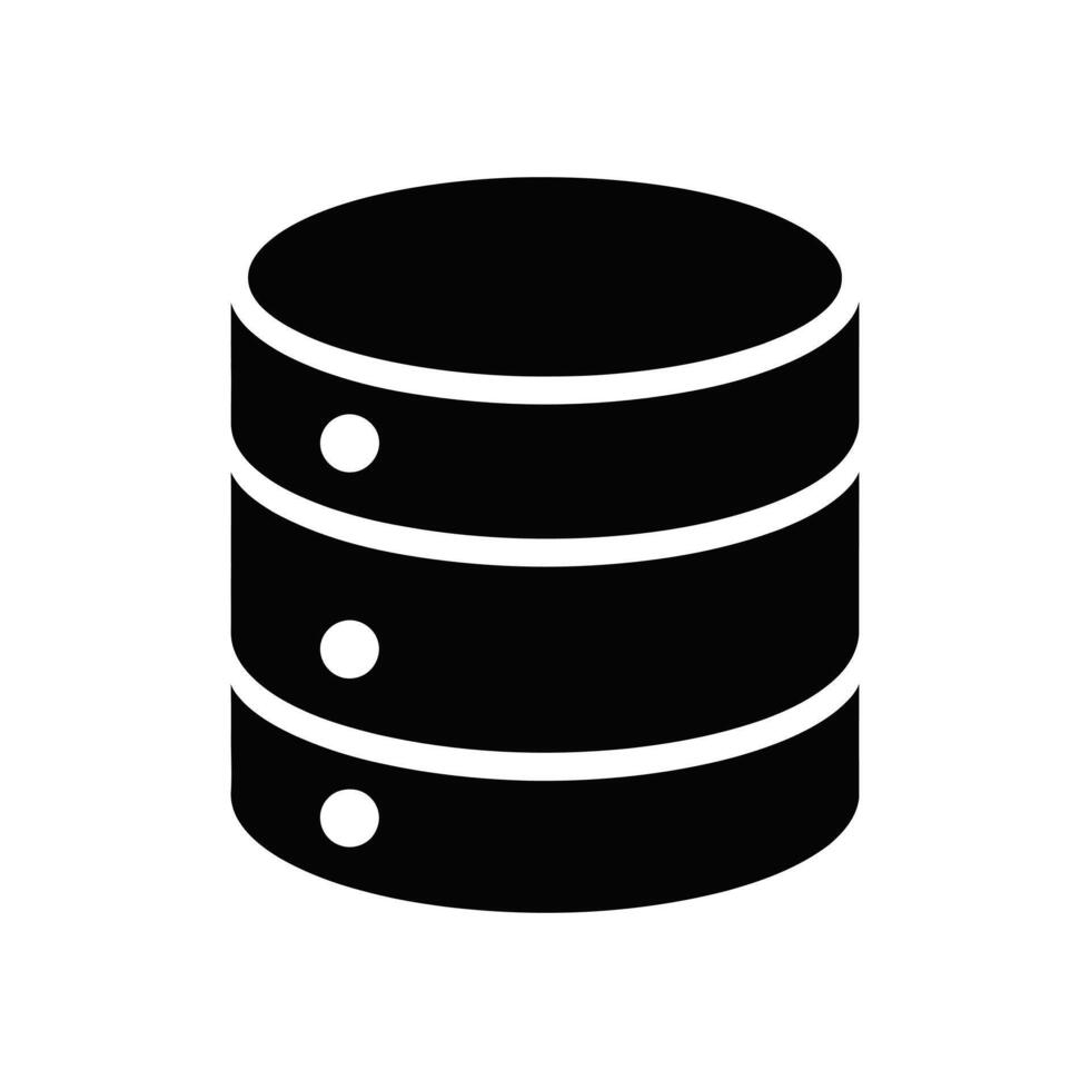 Black database icon showing three cylinders connected, on white background, illustration Pro Vector