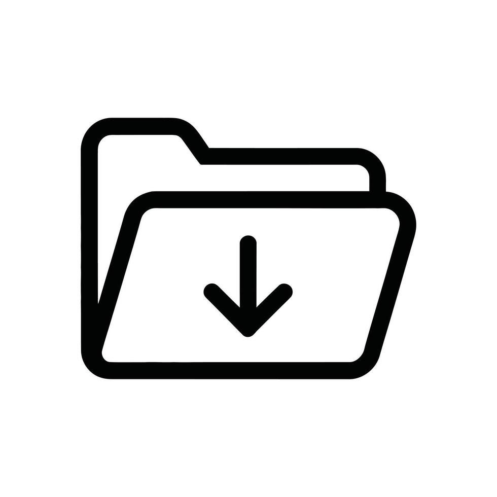 Download folder icon, simple outline style, symbolizes file saving with downward arrow Pro Vector