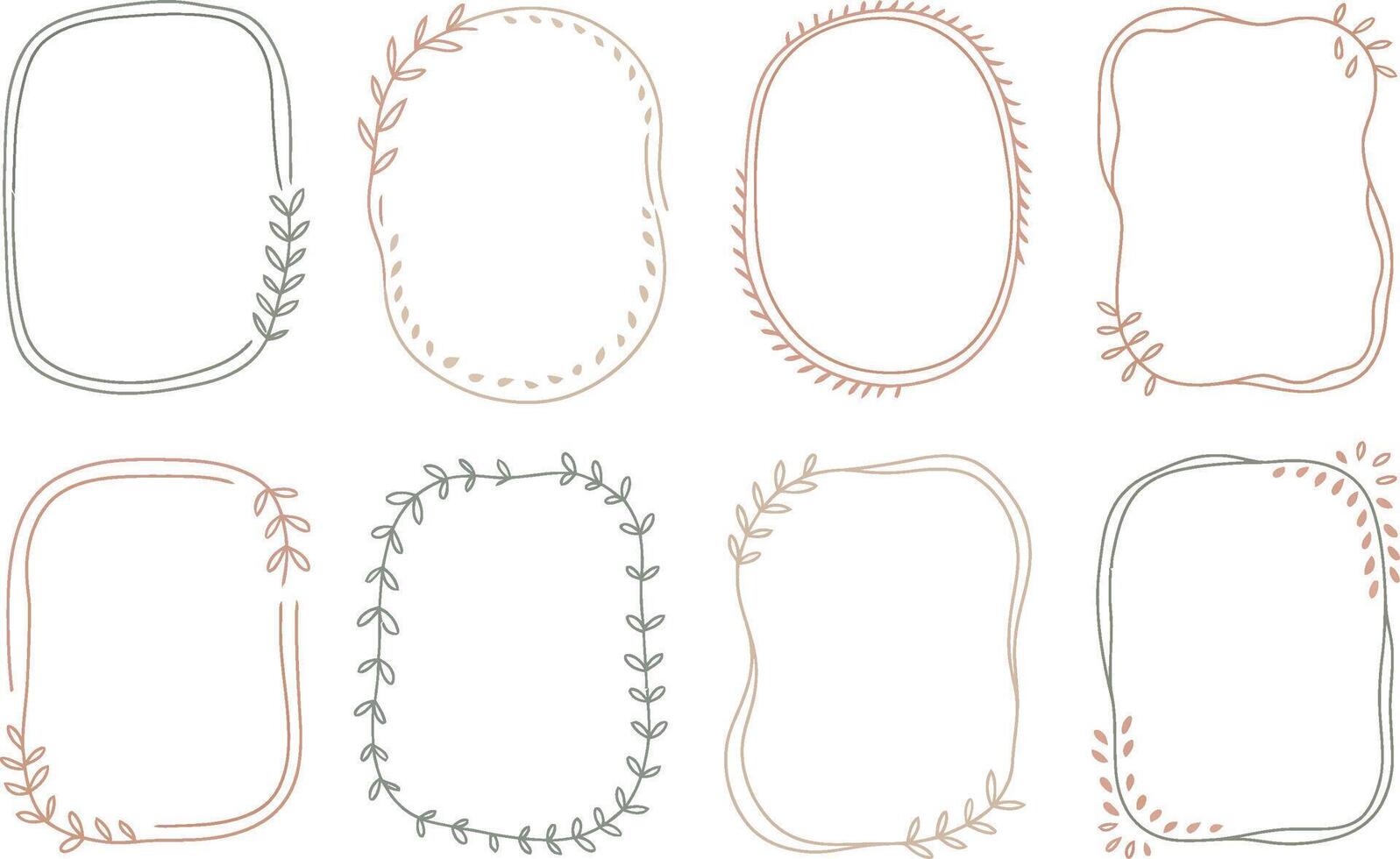 Eight Hand Drawn Oval and Rectangular Frames with Leaf Motifs Pro Vector