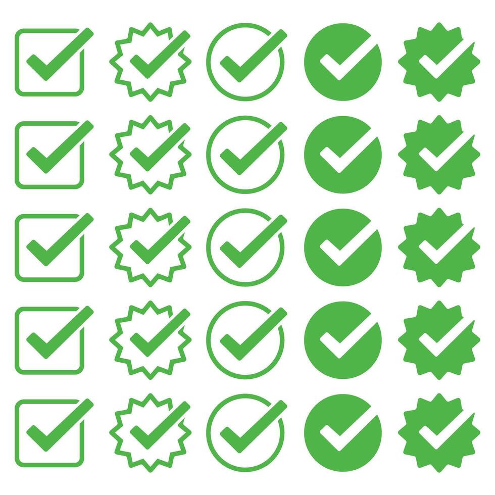 Assorted green check mark symbols arranged on a grid pattern against a white background Pro Vector