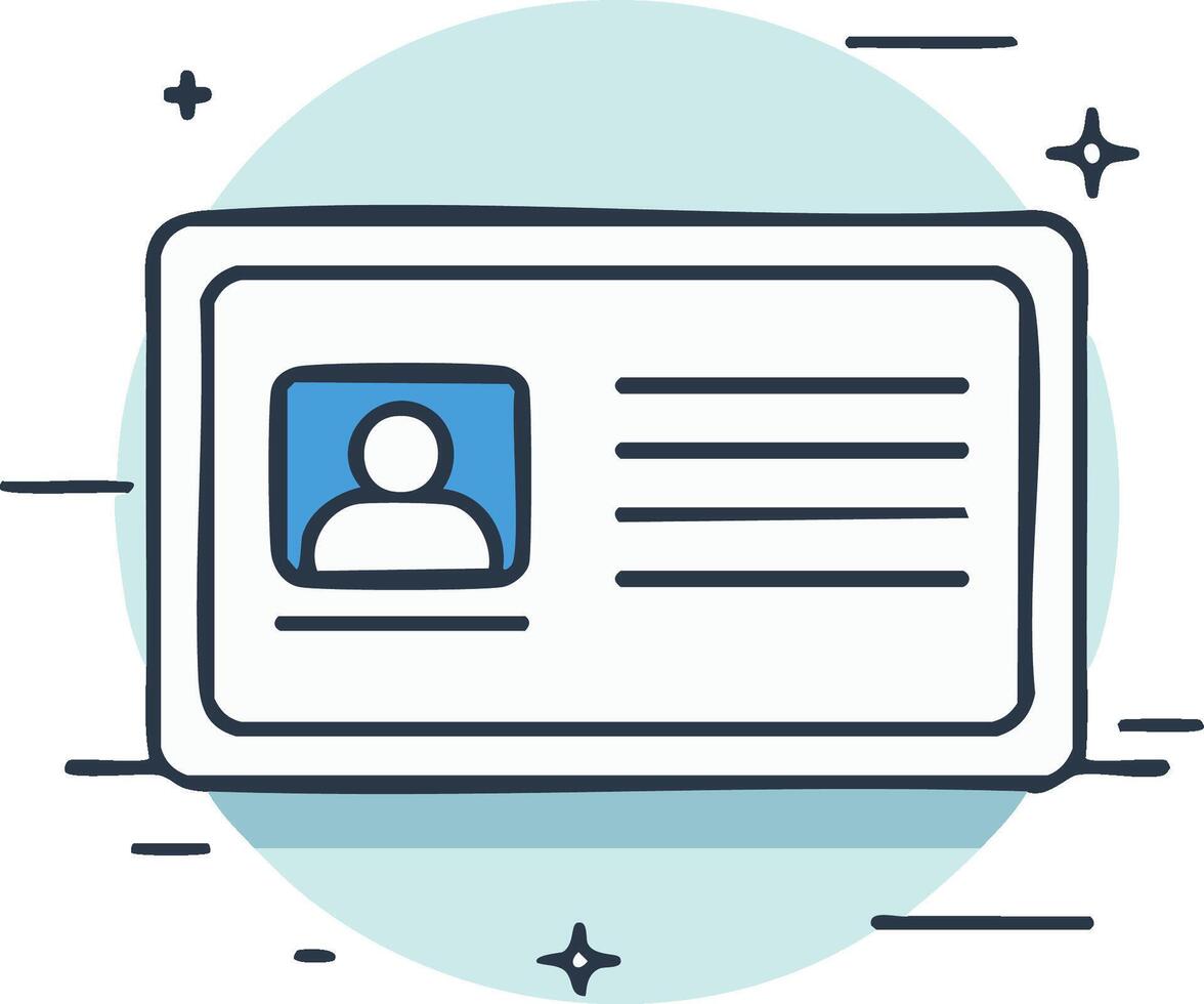 Doodle style identification card with user profile and information lines for identity concept Pro Vector