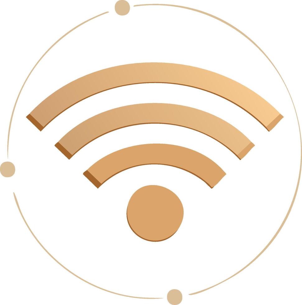 Golden Wireless Signal Icon Elegant 3D Internet Connection Illustration with Circle Network Design Pro Vector