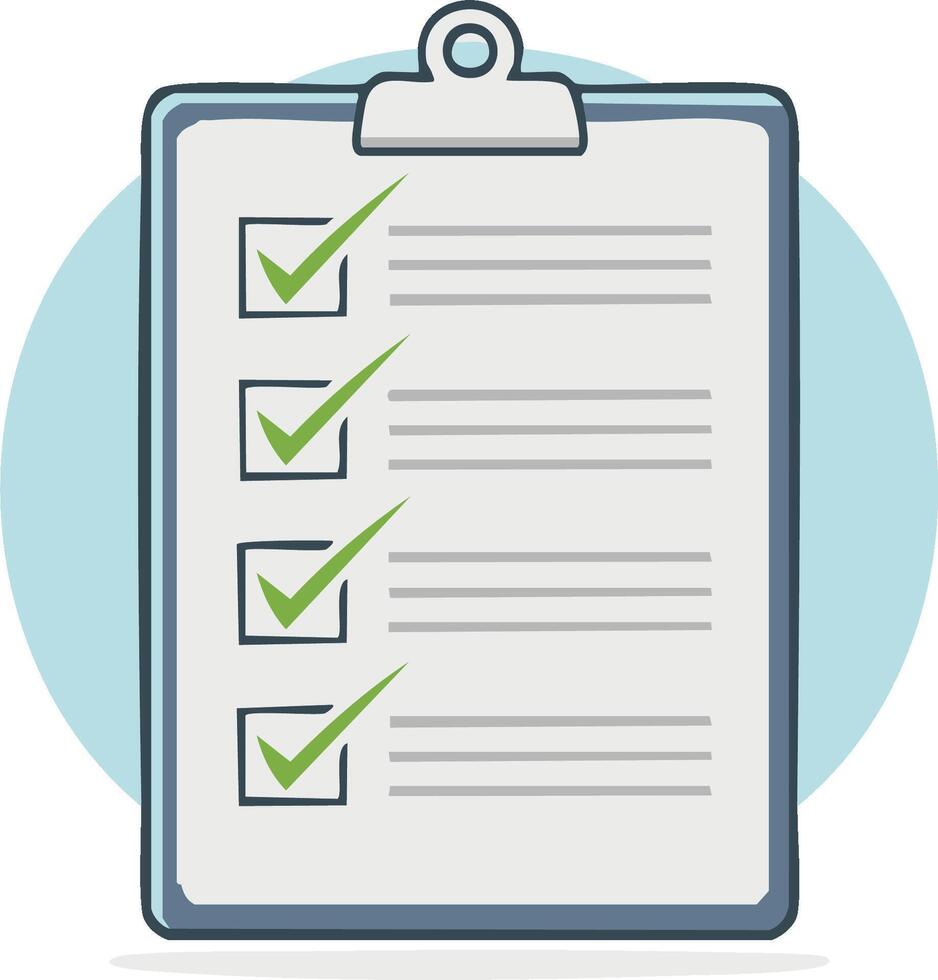 Checklist clipboard with green check marks, completed tasks list illustration Pro Vector