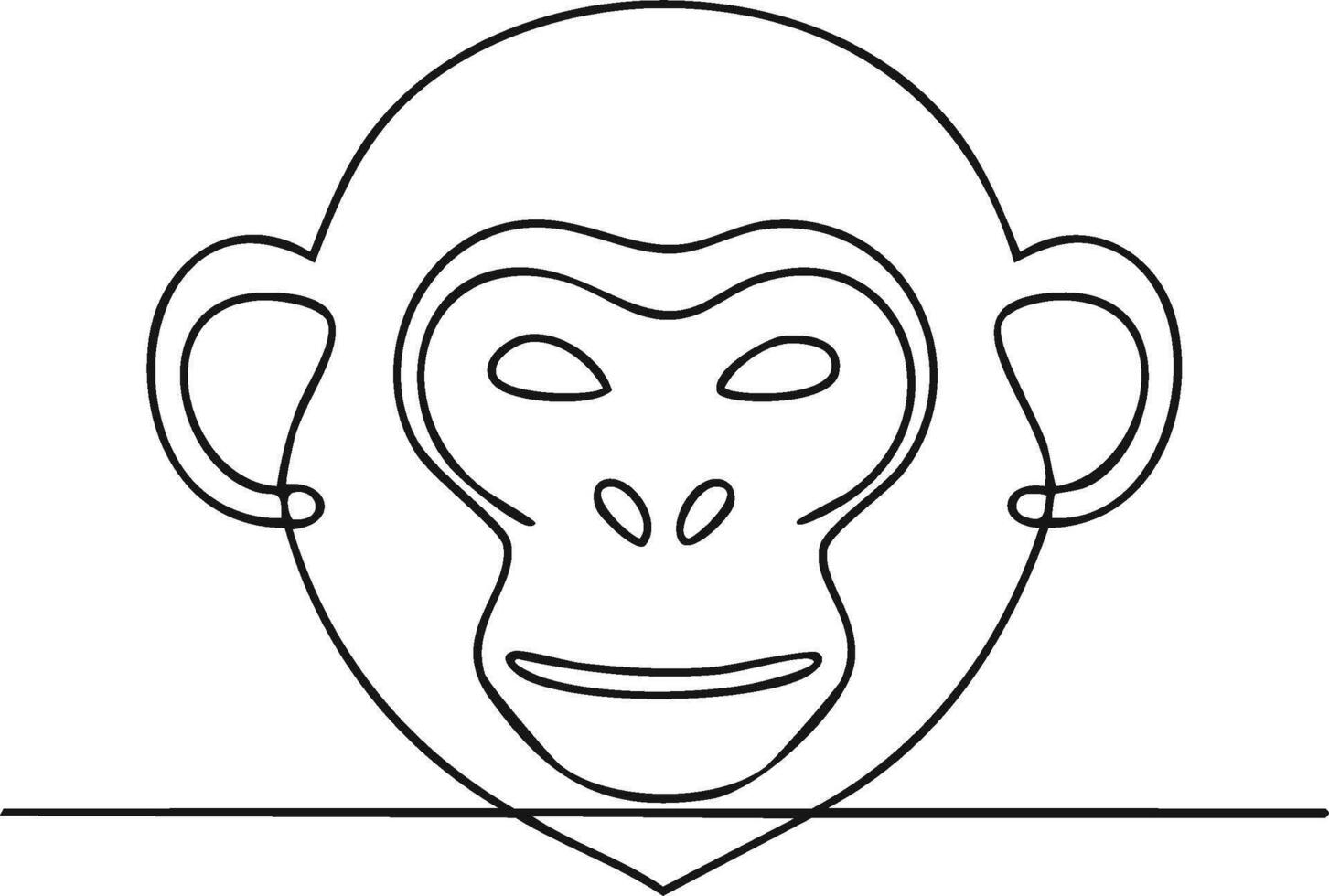 Minimalist continuous line art drawing of a playful monkey head with a simple outline Pro Vector
